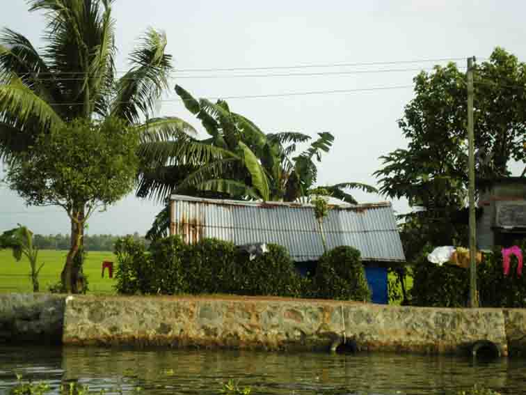 Στη συνέχεια πλησιάσαμε περισσότερο σε κομμάτι στεριάς οπου μου έκαναν τρομερή εντυπωση τα χωρια...¨ολα τα σπίτια είναι χτισμένα σε μια στενή λωρίδα γης γυρω στα 4-5 μέτρα πλάτος και σε ύψος 1 μέτρο πάνω απο την επιφάνεια της λίμνης.....Απο τη μία μεριά βρίσκεται το νερό και απο την άλλη καλλιέργειες ,αν δε κάνω λάθος ηταν ρύζι , σε χαμηλότερο επίπεδο απο τη λίμνη....