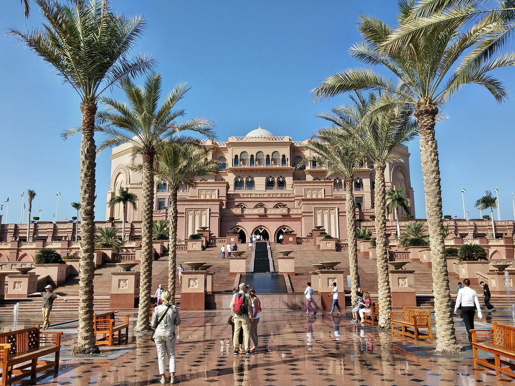 Γυρίσαμε στο ξενοδοχείο, μας έδωσαν ένα ωραιότατο δωμάτιο και απευθείας φύγαμε για να δούμε κάποια βασικά αξιοθέατα. Στις 3.15 είχαμε ραντεβού στο λόμπυ του ξενοδοχείου με τον οδηγό που θα μας πήγαινε στην έρημο για το σαφάρι που είχα κλείσει. Βγαίνουμε από το ξενοδοχείο και βρίσκουμε ταξί σε λίγα δευτερόλεπτα. Λέμε να μας πάει στο Emirates palace. H διαδρομή ήταν 10-15 λεπτά και κόστισε γύρω στα 15 AED (κάτω από 3 ευρώ). Το Emirates palace (πρώην παλάτι του Ελ Σείχ Ζάιεντ) είναι ένα πολυτελέστατο ξενοδοχείο με ελεύθερη είσοδο σε όσους θέλουν να δουν τους (διακοσμημένους με χρυσό και μάρμαρο) χώρους του.