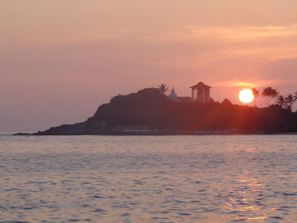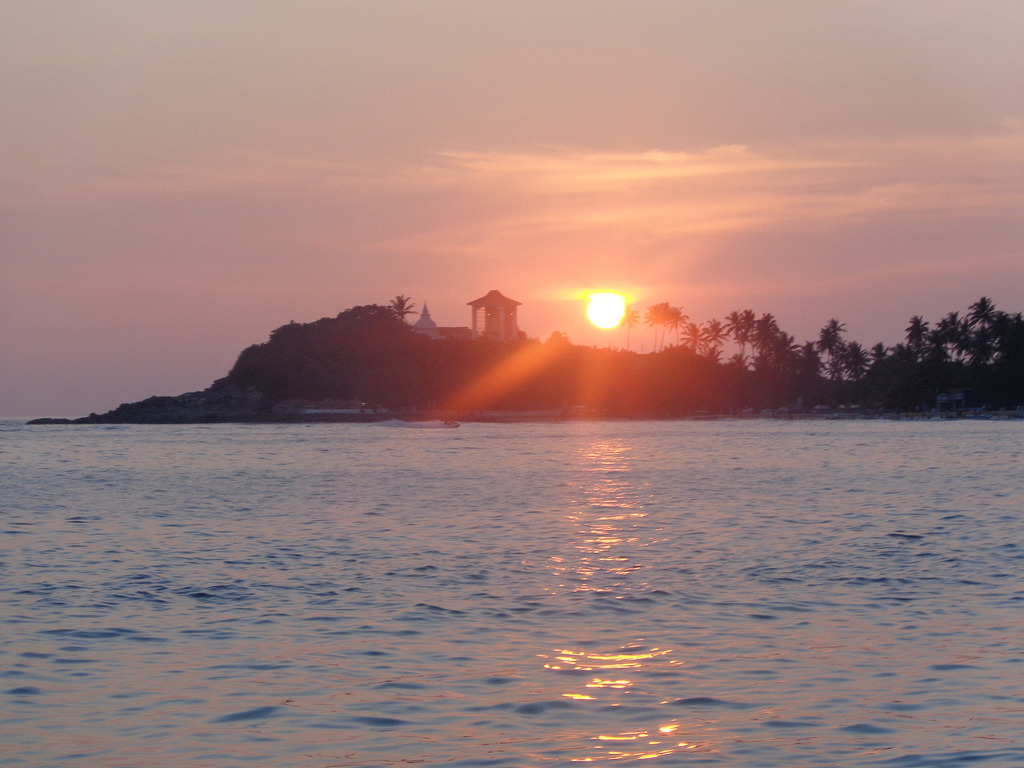 Επειδή νύχτωνε δεν πήγαμε στην κεντρική παραλία της Unawatuna αλλά σε ένα τμήμα της που ήταν κοντά στο ξενοδοχείο, και από εκεί βλέπαμε απέναντι την μεγάλη παραλία. Είχε κι άλλους που έκαναν μπάνιο και ο άντρας μου βούτηξε. Εγώ άλλαξα γνώμη και είπα πως θα κάνω μπανάκι το πρωί. Δεν με ενέπνεε η ώρα.. Προτιμούσα να θαυμάζω το υπέροχο ηλιοβασίλεμα, ένα από τα ωραιότερα που έχω δει!