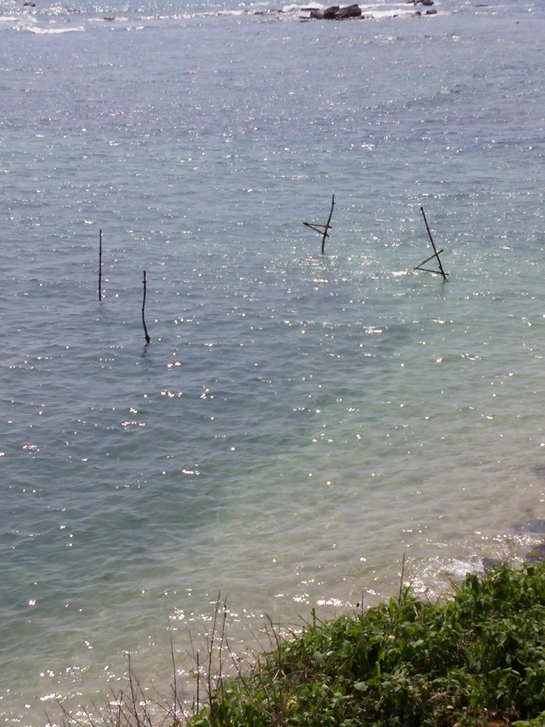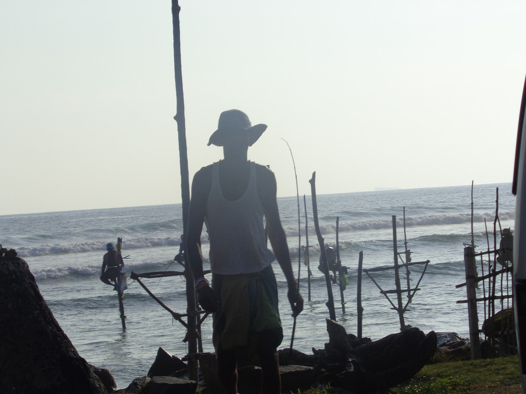 Στον δρόμο προς την Unawatuna σταματήσαμε για να δούμε τους περίφημους stick fishermen. Ο Τίσσα μας είπε πως στο σημείο αυτό δεν κάθονται αληθινοί ψαράδες. Πρόκειται για μεθύστακες που κάνουν πως ψαρεύουν και αν πλησιάσει κάποιος τουρίστας για φωτογραφία έχουν κάποιον δικό τους στον δρόμο και ζητάει λεφτά με τσαμπουκά! Μαζεύουν έτσι χρήματα και μετά αγοράζουν αλκοόλ. Οπότε μας πρότεινε να τους δούμε στα γρήγορα απ'το αμάξι. Αυτό κάναμε και μεις μόνο που με το που σταμάτησε το αυτοκίνητο, μια απειλητική φιγούρα ξεπρόβαλλε απ'το πουθενά και ερχόταν προς το παράθυρο.
