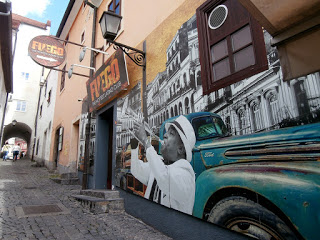 Μετά τη γέφυρα τα πράγματα έγιναν κάπως καλύτερα. Καλά δεν έγιναν ποτέ. Μια κάπως πιο συμπαθητική γωνιά της πόλης φάνηκε με ένα γραφικό ανηφορικό σοκάκι με μπαρ και μερικές ταβέρνες όπου μπορούσες να πιεις μια μπύρα και να φας κάτι σαν το δικό μας σουβλάκι (ψωμί με μπιφτέκι) καθισμένος σε καφέ σκούρα ξύλινα καθίσματα, τα οποία γίνονταν ταίρι καλό με την εικόνα και το ύφος του σημείου της πόλης.