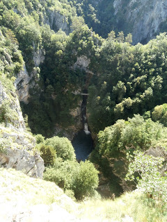 Βγάλαμε εισιτήριο μεταξύ των πρώτων (που περιλάμβανε την πρώτη κλασική διαδρομή αλλά και τη δεύτερη που αποτελούσε τη συνέχειά της 24€ το άτομο. Η πρώτη μόνο διαδρομή κόστιζε αν θυμάμαι καλά 18€) και ανεβήκαμε καθ' υπόδειξη του ταμία να δούμε πανοραμικά από επάνω εκείνο που θα βλέπαμε αργότερα από κάτω και μέσα... Σπήλαιο Skocjan πληροφορίες