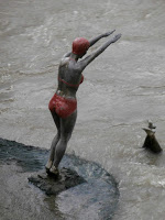 Περπατήσαμε προς τα εκεί τη συνοδεία των αγαλμάτων στα οποία υπάρχει ένα εμφανές κόλλημα των υπευθύνων του έθνους, αλλιώς δεν εξηγείται ούτε το μέγεθος των ογκωδών κατασκευασμάτων αλλά ούτε και η πληθώρα. Υπάρχουν ακόμα και μέσα στον ποταμό που από τη βροχή είχε μεταλλάξει το χρώμα του σε κάποια απόχρωση του καφέ.
