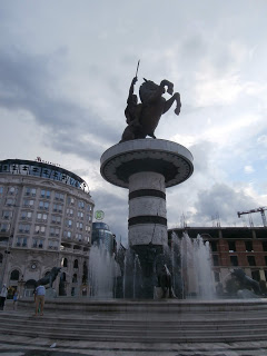 Το άγαλμα του Μ. Αλέξανδρου (ας μην κάνουμε πως δεν καταλαβαίνουμε) πατούσε και αυτό σε μια μεγάλη βάση-συντριβάνι όπου ώρες-ώρες άναβαν από κάτω της φώτα, πράσινα κόκκινα και κίτρινα (σαν τις πεταλουδίστες που έβλεπε η Βουγιουκλάκη στη γνωστή ταινία).
