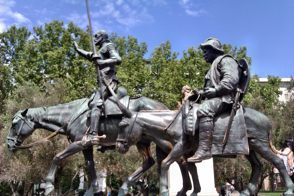 Γυρνώντας στο κέντρο η plaza Espana ήταν από τις πρώτες που είδαμε. Έχει δύο ωραία συντριβάνια και το άγαλμα του Δον Κιχώτη..