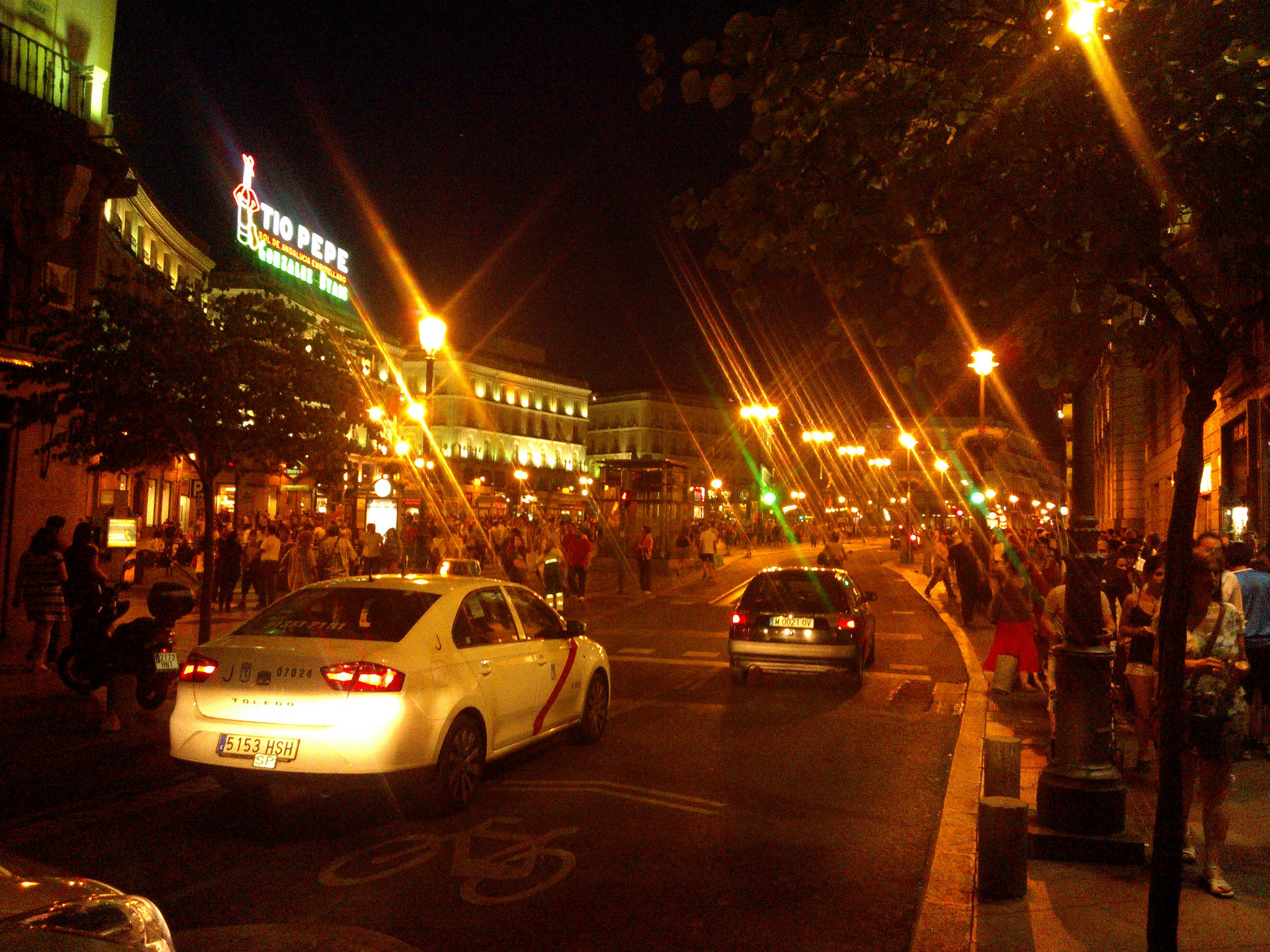 31 Ιουλίου λοιπόν, 8.30 το πρωί, και ξεκινάμε από το Ελ. Βεν. με προορισμό την πρωτεύουσα της Ισπανίας. Καθ'όλη τη διαδρομή έχω την αίσθηση ότι κάτι έχω ξεχάσει.. Και τελικά επαληθεύτηκα.. Ξέχασα τη φωτογραφική μηχανή να φορτίζει πάνω στο τραπέζι! Μεγάλη απογοήτευση.. Οπότε όλες οι φωτογραφίες που θα ακολουθήσουν είναι τραβηγμένες από τα κινητά μας..