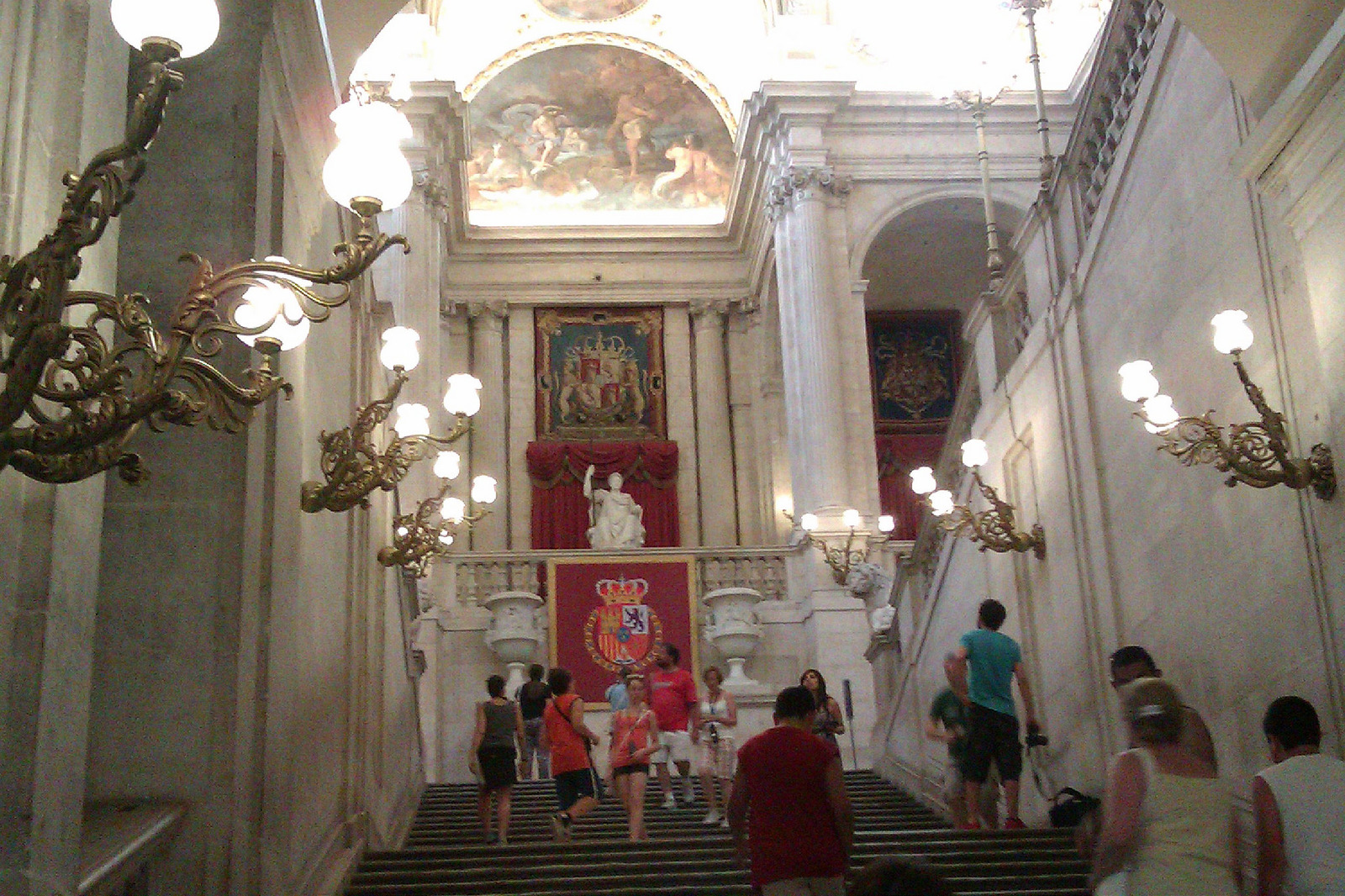 Η συνέχεια της μέρας μας είχε επίσκεψη στο Royal Palace. Δε γνωρίζω πόσο κοστίζει το εισιτήριο (νομίζω γύρω στα 10 ευρώ) γιατί μπήκαμε δωρεάν. Καθημερινά από Δευτέρα έως Πέμπτη, 6-8 η είσοδος είναι δωρεάν (ο υπεύθυνος εκεί μας είπε ότι επιτρέπουν την είσοδο 6 με 7, αλλά ότι και να ισχύει απ'τα δύο καλό είναι να είστε εκεί στις 6 για να έχετε αρκετό χρόνο μέχρι το κλείσιμο να το δείτε). Εμείς πήγαμε 6 παρά 20 και είχε ήδη σχηματιστεί πολύ μεγάλη ουρά! Αλλά δεν αξίζει να πας πολύ νωρίτερα και να περιμένεις γιατί στις 6 ακριβώς που αρχίσουν να δέχονται κόσμο η ουρά προχωράει πολύ γρήγορα.. Σου δίνουν στην είσοδο ένα εισιτήριο με τιμή 0 ευρώ και περνάς κανονικά από έλεγχο εισιτηρίων.