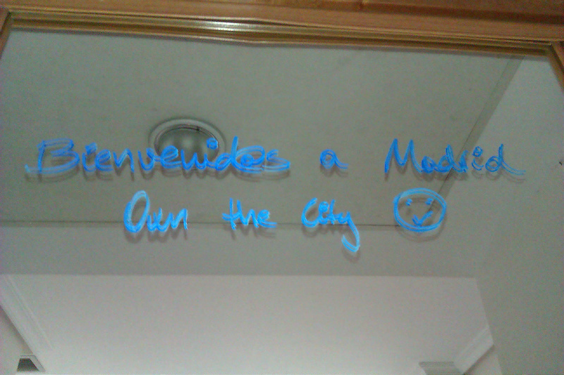Στις 11.20 ώρα Μαδρίτης είμαστε εκεί και έχουμε όλη τη μέρα μπροστά μας. Το ξενοδοχείο που μείναμε ήταν το TRYP Atocha και ήταν πολύ καλό, σε βολικό σημείο δίπλα στο μετρό, και κοντά στον κεντρικό σταθμό τρένων Αtocha. Για τις μετακινήσεις μας πήραμε από το αεροδρόμιο το Madrid tourist travel pass διάρκειας 3 ημερών προς 18.40 ευρώ/άτομο. Κάναμε check in στο ξενοδοχείο και ξεκινήσαμε το πρόγραμμα μας με πρώτη επίσκεψη το Bernabeu που κάποιος ανυπομονούσε να δει!