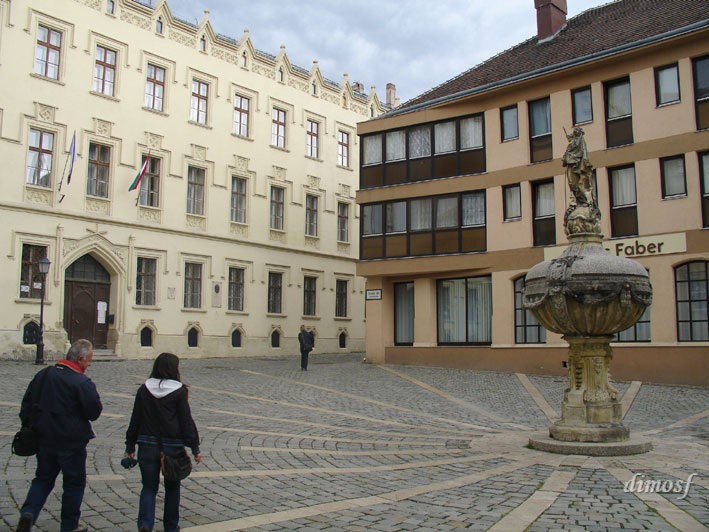 και φυσικά ο εντυπωσιακός μεσαιωνικός πύργος της Πυρασφάλειας, ο Tüztorony, Πρόκειται για ένα κράμα ρυθμών. Η βάση είναι η Ρωμαϊκή πύλη εισόδου στην πόλη, ενώ από πάνω της είναι το τετράγωνο μεσαιωνικό τμήμα του 12ου αι. Ακολουθεί το κυλινδρικό αναγεννησιακό του 16ου και τελειώνει στο μπαρόκ μπαλκόνι με τρούλο του 18ου. Δυστυχώς σαν φτάσαμε βρήκαμε το οικοδόμημα κλειστό λόγω συντήρησης.