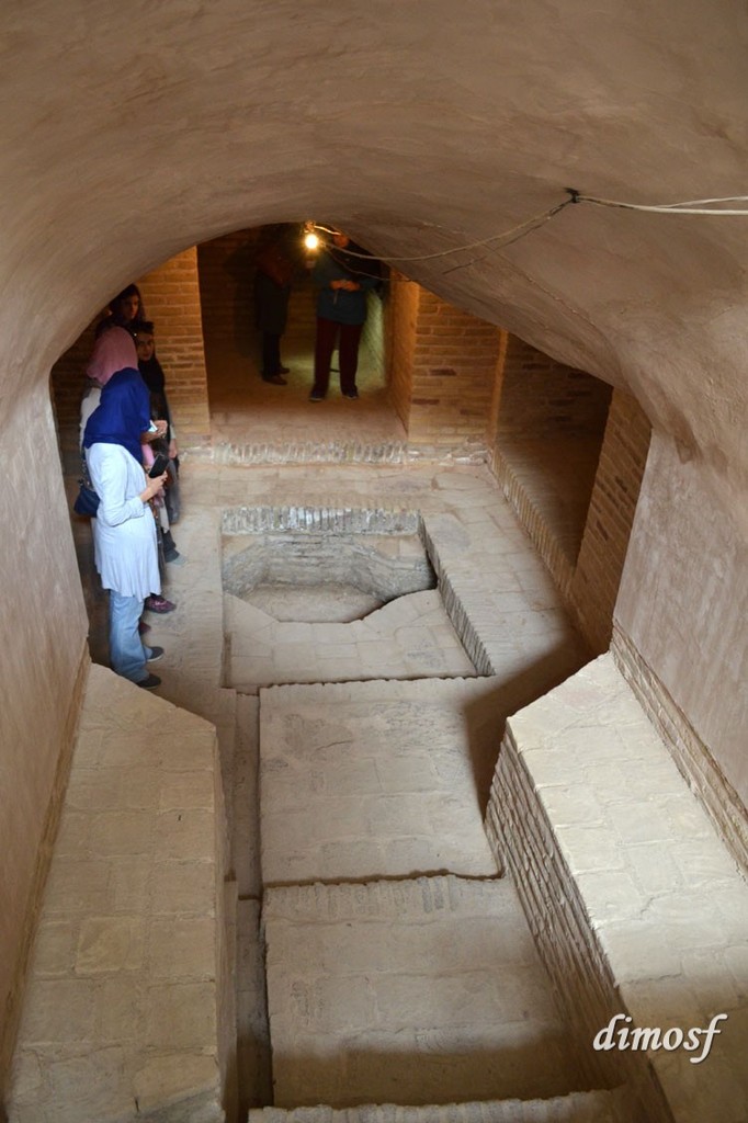 και το γαλήνιο υπόγειο, που δεν έχει κανένα στοιχείο λιθοδομής μιας και είναι σκαμμένο στο έδαφος. Φωτιζόταν από κάποιες αλαβάστρινες πλάκες που υπάρχουν και σήμερα σε διάφορα σημεία του πατώματος της αυλής. Σε αυτό η θερμοκρασία διατηρείται όλο το χρόνο μεταξύ 10 και 15 βαθμών Κελσίου. Πιθανολογείται πως προϋπήρχε του τζαμιού, σαν Ναός της Φωτιάς των Ζωροαστριτών.