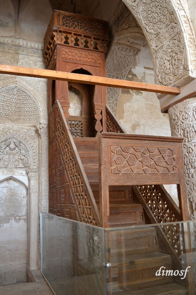 η ξυλόγλυπτη διακόσμηση του άμβωνα (menbar), που είναι συνομήλικη του μιναρέ
