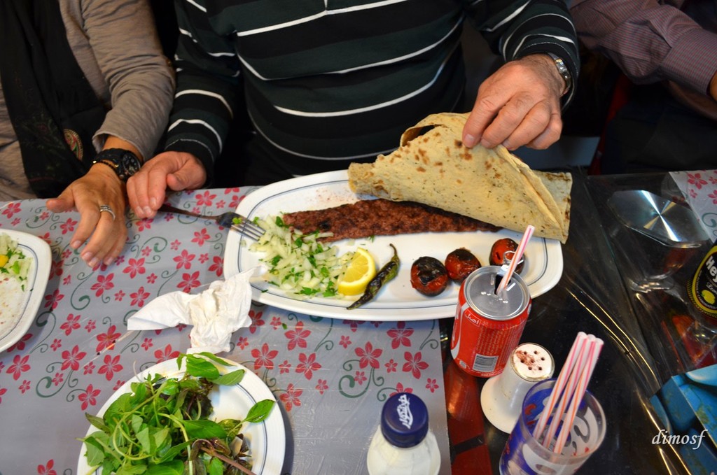 Κάναμε κι εμείς βόλτες, βγάλαμε πολλές φωτογραφίες και φτάσαμε στο εστιατόριο selfservice. Είχε φαγητά από όλες τις περιοχές της χώρας και έτσι δοκιμάσαμε μια ποικιλία, που θα την ονομάζαμε «πανόραμα της Ιρανικής κουζίνας». Εξαιρετικό φαγητό σε λογική τιμή.
