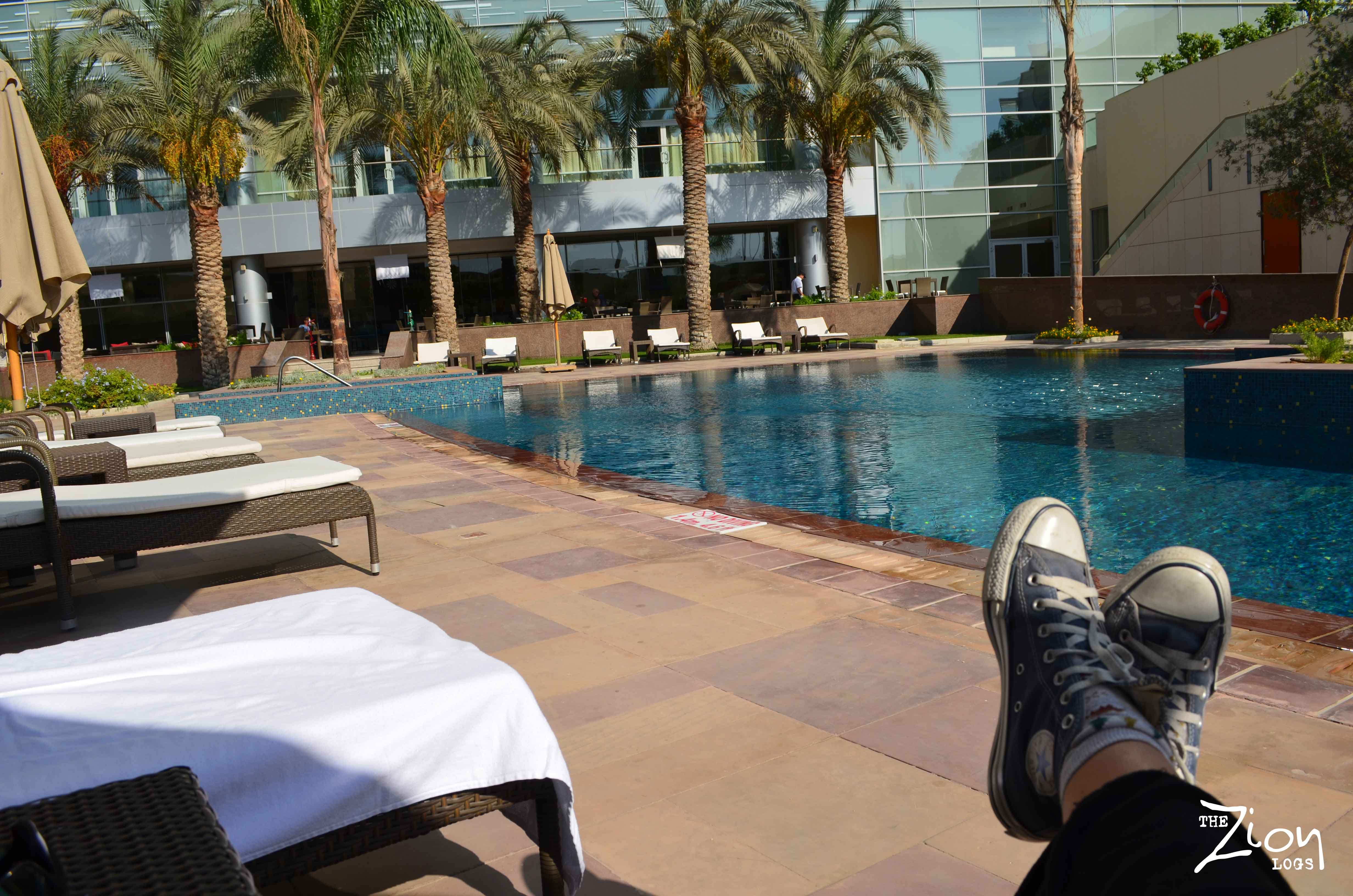Βγήκαμε σε έναν τεράστιο διάδρομο με υπέροχους πίνακες, λουλούδια, καναπεδάρες, bistro, μάρμαρα και δεν συμμαζεύεται. Το μέρος έσφυζε από πολυτέλεια, ντιζάιν και υψηλή αισθητική. (Ποιά ιδεολογία, ποιός Τσε, ποιός Γκάντι, κάτι τέτοια μέρη θα σε κάνουν μια μέρα να πουλήσεις τη ψυχή σου στο διάολο...). Και εκεί, πίσω από την όμορφη τζαμαρία του λόμπι, το μάτι μας έπιασε κάτι μπλε που παιχνίδιζε χαρούμενα στον ήλιο. Το ξενοδοχείο είχε ΚΑΙ ΠΙΣΙΝΑ. Μια πισινάρα ΝΑ με το συμπάθιο.