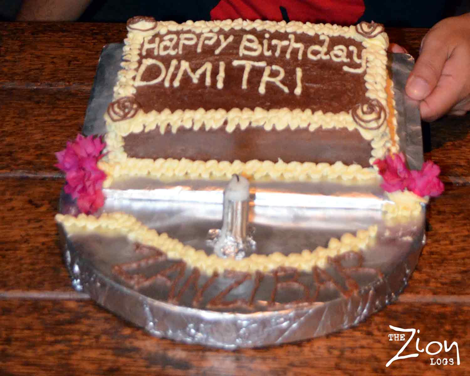 Εκεί που χαλαρώναμε μπροστά στα απομεινάρια του δείπνου μας, ξαφνικά βγήκε από την κουζίνα μια κουστωδία από μάγειρες, σερβιτόρους και λοιπό προσωπικό, οι οποίοι με κατσαρόλες και κουτάλες ανά χείρας, πλαισίωναν τον chef, που κράταγε... μια μεγάλη τούρτα! Παράλληλα από το μπαρ άρχισε να παίζει το happy birthday to you, σε ποπ εκδοχή. Ήταν η πιο απίστευτη έκπληξη! Οι εθελοντές πιάσανε και αυτοί τον ρυθμό, οι μάγειρες τραγουδούσανε και κοπανάγανε τις κατσαρόλες!