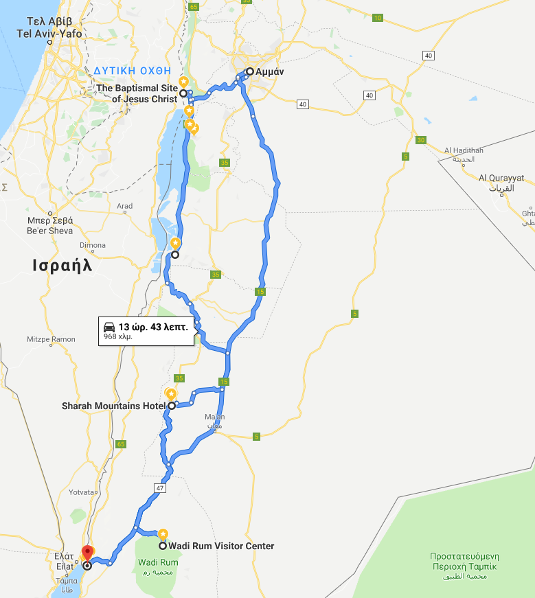 έχουμε την πίεση του χρόνου.Πάμε στη νεκρά θάλασσα που απέχει από την Πέτρα 210χλμ.