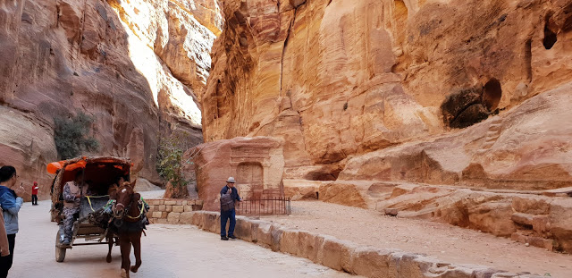 οδηγεί στο φαράγγι Σικ.Εκεί υπάρχουν άλογα και άμαξες που μπορούν να σε πάνε μέχρι