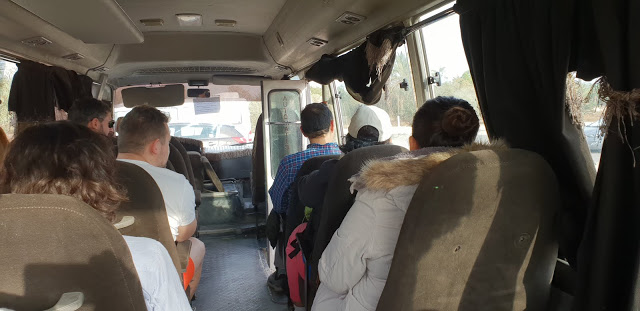 μπήκαμε σ΄ένα μίνι λεωφορείο για να μας πάει στον Ιορδάνη ποταμό.