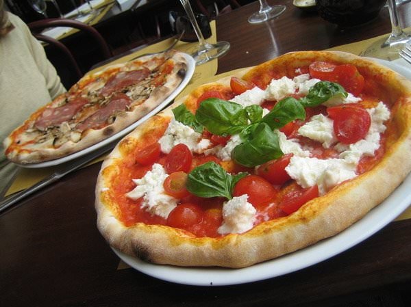 Πολύ ωραίο και το φαγητό, πήραμε ένα πολυ ωραίο antipasti με prosciutto di parma και mozzarella di bufalla και, κατόπιν, 2 πίτσες. Η δικιά μου (ω τι έκπληξη!) έχει ντοματίνια! «Επιτέλους, τα περίφημα ντοματίνια» Τοσκάνης λέω μέσα μου, καθώς θυμάμαι το αλήστου μνήμης thread-υπερπαραγωγή του travelstories... :cool: