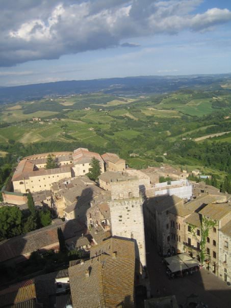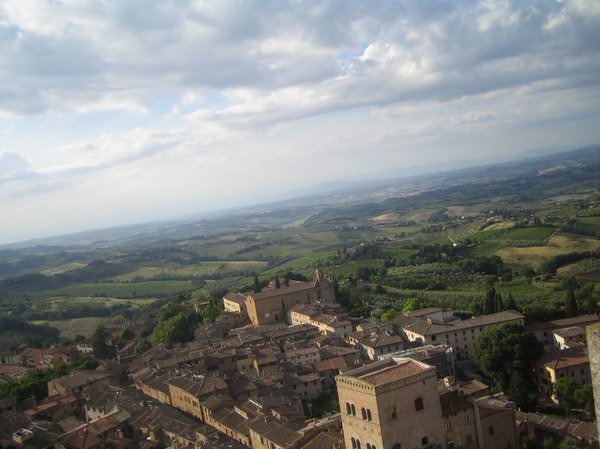 Επιστροφή στην Piazza Del Campo και... καθώς είναι ακόμη μεσημεράκι, αποφασίζουμε να πάμε και στο Σαν Τζιμινιάνο, με το λεωφορείο. Για ακόμη μια φορά, πανέμορφα πράσινα τοπία, με αποτέλεσμα να μη μας ενοχλήσει ούτε το ελάχιστο το γεγονός ότι το λεωφορείο περνάει πάλι μέσα από τα χωριά (οκ ίσως όχι τα ομορφότερα της Τοσκάνης, αλλά εμείς θέλαμε να χορτάσουμε όσο το δυνατόν περισσότερη φύση) και γενικά δεν ακολουθεί τη συντομότερη διαδρομή. Μετά από μία περίπου ώρα, άφιξη στο Σαν Τζιμινιάνο, το οποίο αποδεικνύεται και αυτό ένα παραμυθένιο μέρος. Χτισμένο μέσα σε ένα κάστρο, το Σαν Τζιμινιάνο είχε κάποτε περίπου 70 πύργους, από τους οποίους σήμερα παραμένουν οι 14. Δεν είναι τυχαίο ότι κάποιοι το λένε «Μανχάταν του Μεσαίωνα».