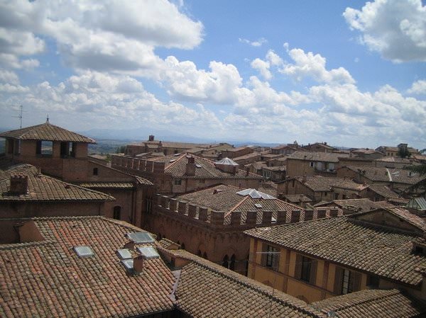 Διακρίνεται μέρος της Piazza Del Campo (σε σχήμα κοχυλιού) και το Palazzo Publico
