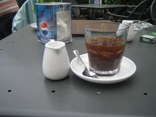 Πρώτη διαπίστωση ότι οι τιμές είναι τιμές Αθήνας (έως και πιο ακριβές, όπως αποδείχθηκε σε κάποια πράγματα). Ε, ναι! Μου το ‘χανε πει ότι είναι ακριβή πόλη η Φλωρεντία... επιβεβαιώθηκαν. 4.5 ευρώ ο καφές λοιπόν... οκ... τα ‘χω συνηθίσει και από την πόλη μου... Κάνω, βέβαια, το λάθος να παραγγείλω freddo… και μου έρχεται ένα ποτήρι χαμηλό (πώς είναι αυτά που βάζουμε τα ουίσκι on the rocks αααυτά) με πάγο μέσα... Μάλιστα μάλιστα... Θα βιαστείτε να μου πείτε ότι έτσι τον σερβίρουν εκεί... Ναι... ναι... είπαμε είμαι νεούδι στην Ιταλία δεν το σκέφτηκα εκείνη τη στιγμή (κι ας το είχα δει και στην αγαπημένη Βαρκελώνη το εργάκι). Κι επειδή είχα ζητήσει Cappuccino Freddo και όχι Espresso, η υπερπαραγωγή συμπληρώνεται από ένα κανατάκι με γάλα (αχτύπητο παρακαλώ!). Ό,τι και να ‘τανε, είχα ανάγκη από καφείνη επειγόντως, ακόμη και σε ενέσιμη μορφή... οπότε τι να κάνω το πίνω!