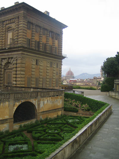 Στην είσοδο διαπιστώνω ότι υπάρχουν 3 διαφορετικοί είσοδοι ανάλογα με το αξιοθέατο που ήθελες να δεις. Εγώ επέλεξα το δεύτερο εισιτήριο που κόστιζε 10 ευρώ και σου επέτρεπε να δεις τους κήπους Boboli και 2 μουσειάκια (πορσελάνης και κουστουμιών). Λόγω καιρού δεν είχε πολύ κόσμο: εγώ, δύο γιαπωνέζες (ω... ναι, χωρίς μάσκα) και ένα ζευγαράκι. Πανέμορφοι οι αναγεννησιακοί κήποι, οι οποίοι δημιουργήθηκαν για τους Μεδίκους ένα χρόνο αφότου είχαν αγοράσει το Palazzo: πράσινο, συντριβάνια, ωραίοι σχηματισμοί, αγάλματα διαφόρων ρυθμών και περιόδων και από ψηλά ωραίες θέες της Φλωρεντίας.