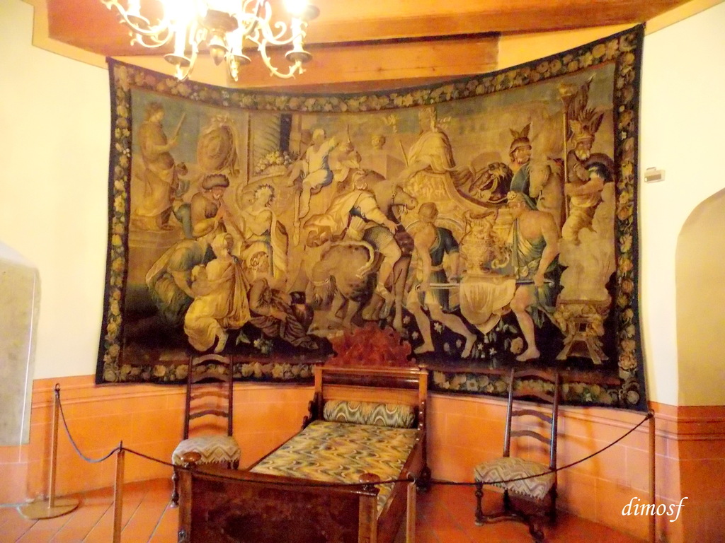 με την ταπισερί της νίκης του Αλέξανδρου, πάνω από το κρεβάτι