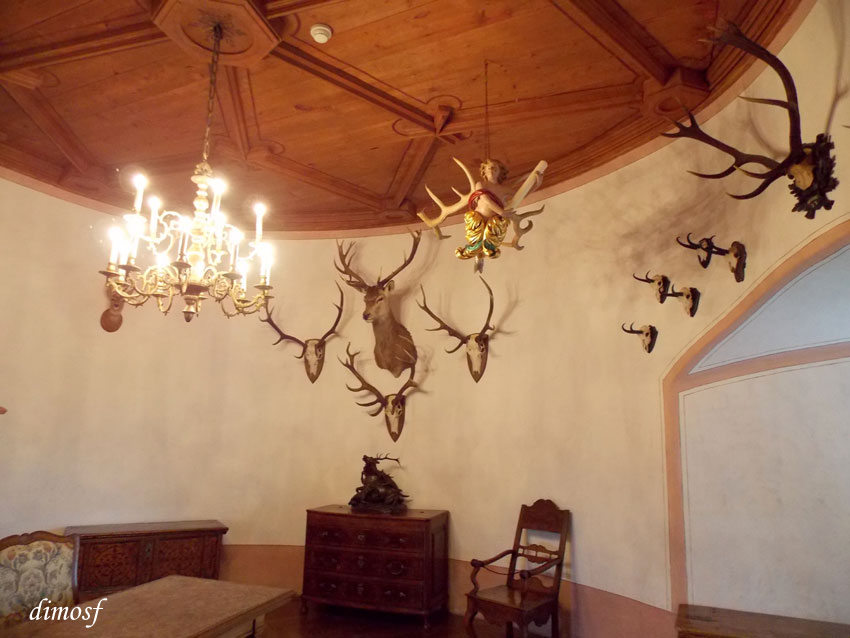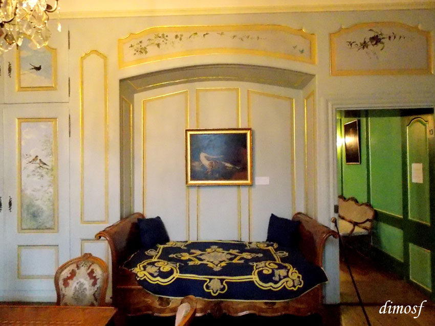και πορσελάνινες στόφες-θερμάστρες και πολύ όμορφες ταπισερί, όπως στο «Δωμάτιο της Όμορφης Λούση»