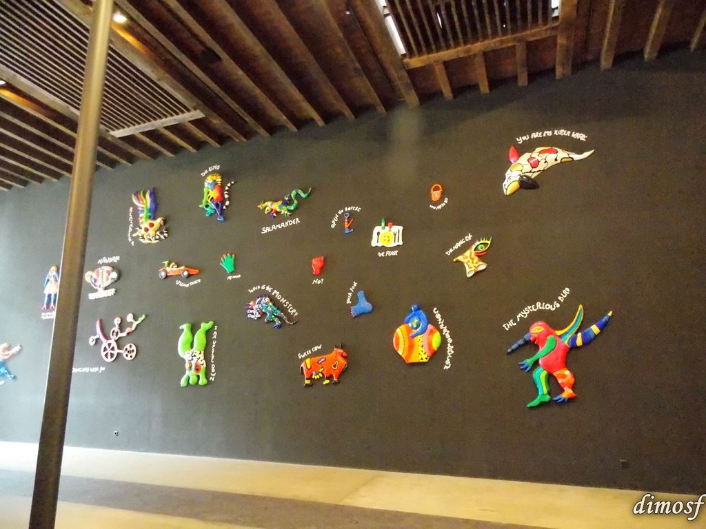 Τα έργα της Niki de Saint Phalle είναι σκόρπια στο χώρο. Μικρών ή μεσαίων διαστάσεων, όπως το υπέροχο παγκάκι με τη μητέρα και το παιδί,