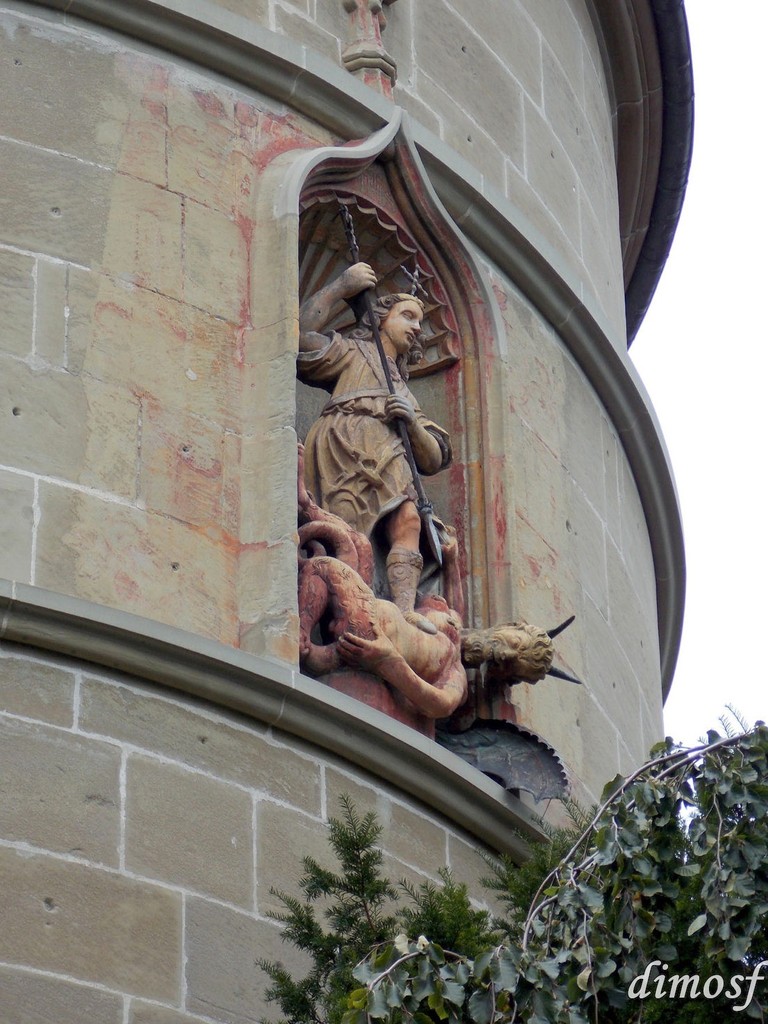 Μπροστά του η κρήνη με το άγαλμα του Δρακοκτόνου Αγίου Γεωργίου, του 1525,