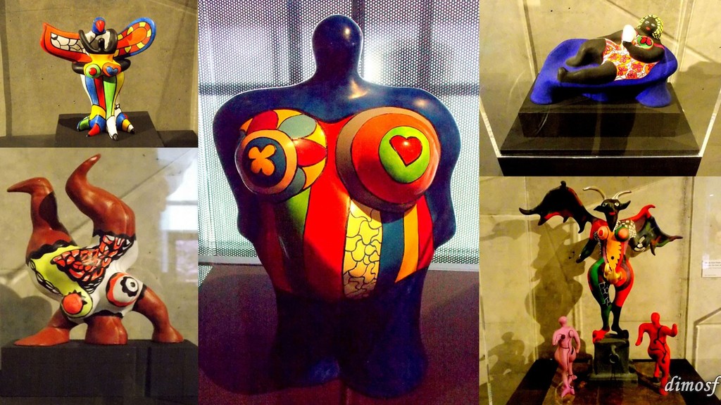 Τα έργα της Niki de Saint Phalle είναι σκόρπια στο χώρο. Μικρών ή μεσαίων διαστάσεων, όπως το υπέροχο παγκάκι με τη μητέρα και το παιδί,