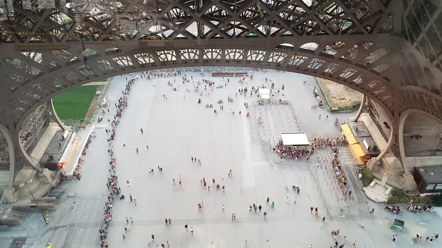 Αποφασίσαμε να ανεβούμε με το ασανσέρ και περιμέναμε στην ουρά για να βγάλουμε εισιτήριο περίπου μία ώρα.Τελικά ήταν καλή ιδέα η επίσκεψη του πύργου το απόγευμα γιατί δεν έχει πολύ ζέστη και ο ήλιος πέφτει.Αυτό που μας έκανε εντύπωση ήταν ο χώρος που περιμέναμε για τα εισιτήρια ήταν παραμελημένος αρκετά βρώμικος και καθόλου οργανωμένος.