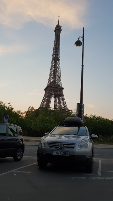 Αργά το απόγευμα λοιπόν με το αυτοκίνητο πήγαμε στον πύργο του Άιφελ και παρκάραμε ακριβώς κάτω από τον πύργο σε υπαίθριο πάρκινγκ εντελώς δωρεάν επειδή ήταν μετά τις 8:00μ.μ.