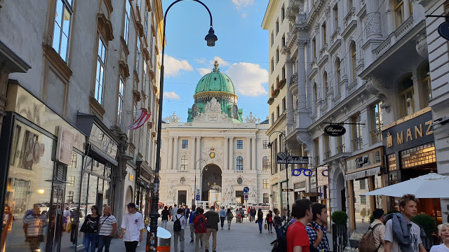 Είμαστε πλέον στην στην καρδιά της πόλης όπου εκεί βρίσκονται τα χειμερινά ανάκτορα της πριγκίπισσας Σίσσυς, το ανάκτορο Hofburg.Πραγματικά επιβλητικό με εξαιρετικά γλυπτά,όλα εντυπωσιακά.Το σύμπλεγμα του Hofburg περιλαμβάνει αρκετά μουσεία,την Εθνική Βιβλιοθήκη της Βιέννης και την περίφημη Ισπανική Σχολή Ιππασίας με τις εντυπωσιακές επιδείξεις ειδικά εκπαιδευμένων αλόγων.Αφού περιπλανηθήκαμε σ’αυτους τους χώρους περπατώντας στους κεντρικούς δρόμους της πόλης περάσαμε και είδαμε μόνο εξωτερικά το Αυστριακό Κοινοβούλιο που στην είσοδό του υπάρχει η Κρήνη της Αθηνάς δηλαδή το άγαλμα της θεάς και της σοφίας, από το μουσείο Albertina ένα από τα σημαντικότερα μουσεία του κόσμου και την κρατική όπερα της Βιέννης,ένα επίσης επιβλητικό κτίριο.