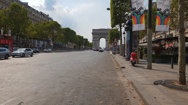 Συνεχίσαμε τη βόλτα μας και φτάσαμε στη λεωφόρο των Ηλισίων Πεδίων, που έχει 71μ.πλάτος και εκτείνεται σε μήκος δύο χιλιομέτρων. Κατά τη διαδρομή θαυμάσαμε τα πολυτελή καταστήματα και στο τέλος της λεωφόρου αντικρίσαμε την Αψίδα του Θριάμβου.Είναι επιβλητική καθώς είναι η πιο ψηλή αψίδα του κόσμου με ύψος 55 μέτρα, και πλάτος 45 μέτρα. Στην επιφάνειά της είναι χαραγμένα τα ονόματα των νικών των γαλλικών στρατευμάτων αλλά και των 558 στρατηγών που διοίκησαν τα γαλλικά στρατεύματα κατά τη διάρκεια της βασιλείας του Ναπολέοντα.Έτσι βγάλαμε τις απαραίτητες φωτογραφίες στο εντυπωσιακό μνημείο και συνεχίσαμε την περιήγησή μας.