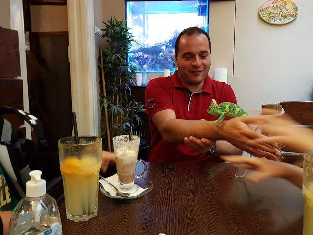 Κατά τη διάρκεια της παραμονής μας, μας φέρναν στο τραπέζι μας διάφορα ζωάκια να χαϊδέψουμε, όπως φίδι, ιγκουάνα χάμστερ,κουνέλι και σαύρα.Μας έδιναν πληροφορίες για τα ζώα ,τ΄΄αφηναν το καθένα περίπου δέκα λεπτά και μας τ΄άλλαζαν.’Ήταν όλοι τους πολύ ευγενικοί και ο καφές δεν κόστιζε ακριβά.