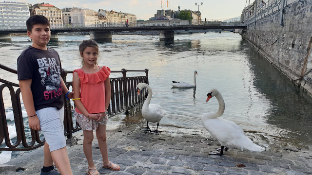 Διασχίσαμε τη γέφυρα που ενώνει τις δύο πλευρές της πόλης και θαυμάσαμε τη λίμνη που είναι τεράστια και πολύ όμορφη.Εκεί βρίσκεται και το ξακουστό και ψηλότερο συντριβάνι της Ευρώπης το jet d’Eau που ο πίδακας του μπορεί να φτάσει τα 140 μέτρα.Εμείς δεν σταθήκαμε τυχεροί να το δούμε καθώς δεν λειτουργεί συνέχεια