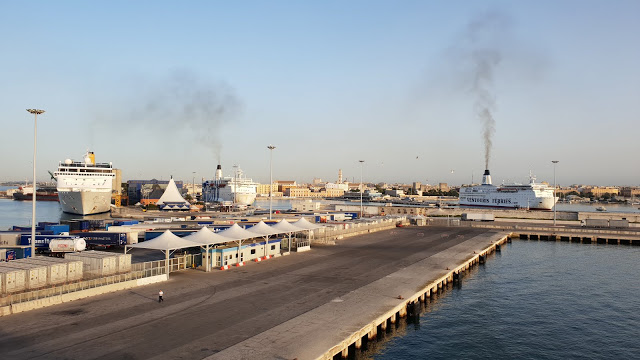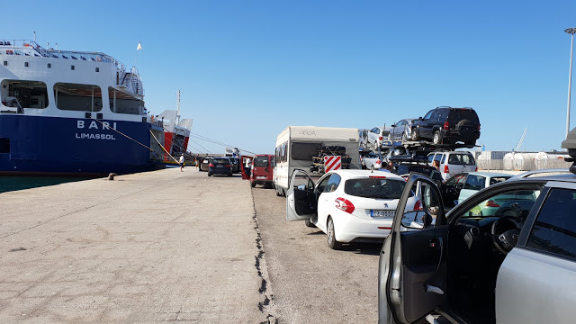 Πριν φτάσουμε στο Μπάρι πληρώσαμε 34,70 ευρώ στα διόδια και κάναμε μια στάση στο εκπτωτικό χωριό για τα τελευταία ψώνια στην Ιταλία.Αρκετά μεγάλο χωριό με ιδιαίτερο ενδιαφέρον καταστήματα και τιμές.Στις 5 ακριβώς βρισκόμαστε στο λιμάνι του Μπάρι.Τακτοποιήσαμε τα εισιτήρια και επιβιβαστήκαμε στο καράβι.