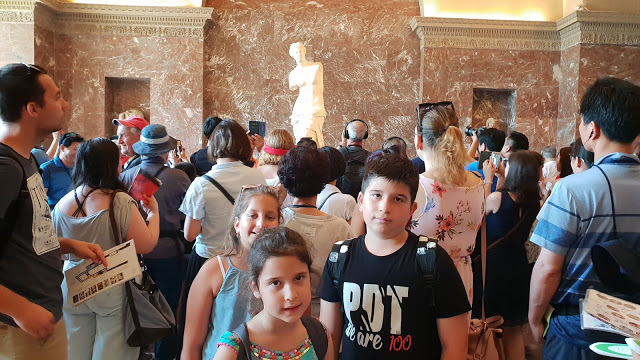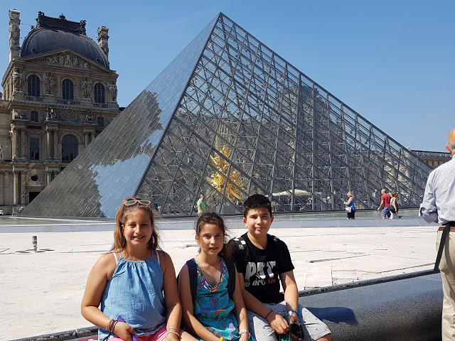 Με το μετρό κατεβήκαμε στο μουσείο του Λούβρου.Με μια πρώτη εξωτερική ματιά είναι καταπληκτικό.Με αρκετό κόσμο αλλά χωρίς μεγάλη αναμονή βγάλαμε εισιτήρια 15 ευρώ το άτομο και τα παιδιά δωρεάν.