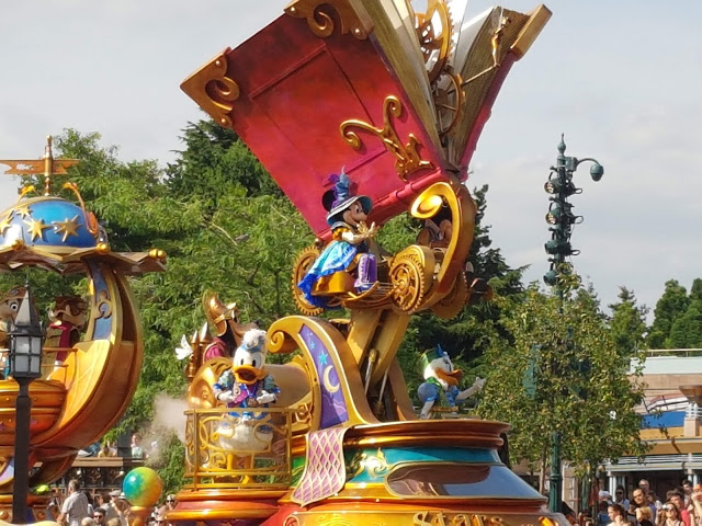Αυτό όμως που ξεχώρισε ήταν η απογευματινή παρέλαση.Στις 5:30 μ.μ. όλα σταματούν και στους κεντρικούς δρόμους του πάρκου παρελαύνουν άρματα πάνω στα οποία στέκονται, χορεύουν και χαιρετούν όλοι οι αγαπημένοι πρωταγωνιστές των παραμυθιών του Disney:Όλη η παρέα του Μίκυ.οι πρωταγωνιστές του Toy Story,ο Πίτερ Παν με την παρέα του , οι πρωταγωνιστές του Toy Story, ο Πίτερ Παν με την παρέα του και φυσικά όλες οι πριγκίπισσες της Disney παρέα με τους πρίγκιπες τους! Η μουσική, ο χορός και το τραγούδι συνεπαίρνει τα παιδιά, όμως αυτό που κάνει το θέαμα πραγματικά εντυπωσιακό είναι οι ίδιοι οι παρελαύνοντες, τα πρόσωπα των οποίων μοιάζουν εκπληκτικά με αυτά των αντίστοιχων κινηματογραφικών ηρώων!