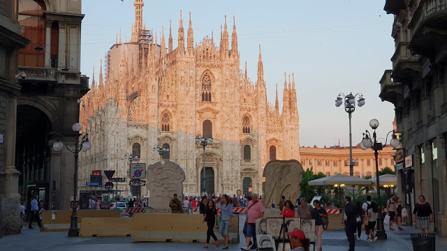 Στο Μιλάνο κινούμαστε με το μέτρο γιατί στην παλιά πόλη που βρίσκονται τα αξιοθέατα που πρέπει να επισκεφτούμε ισχύουν περιορισμοί για τη χρήση των αυτοκινήτων.Έτσι κάναμε μόνο μια αναγνωριστικη βόλτα στη Piazza del Duomo, χωρίς να να επισκεφτούμε κάτι συγκεκριμένο μιας και η ώρα έχει περάσει.