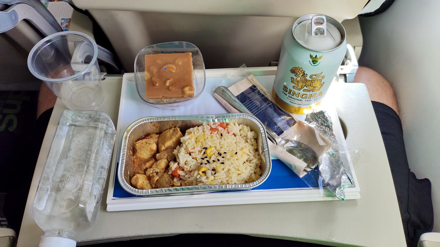 Τελικά η Amelia ήταν μια από τις καλύτερες εταιρείες που είχαμε πετάξει στη ζωή μας, σερβίροντας μας (στην υπέρ-άνετη οικονομική θέση παρακαλώ) ένα εξαιρετικό ρύζι με μπαχαρικά και χοιρινό, γλυκάκι κέικ φυστικιού, μπύρα παγωμένη και νεράκι. Έξοχα: