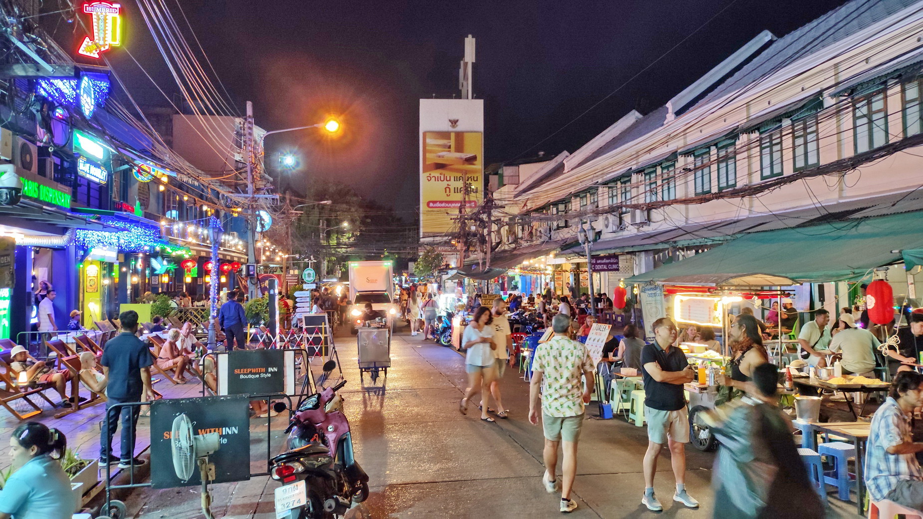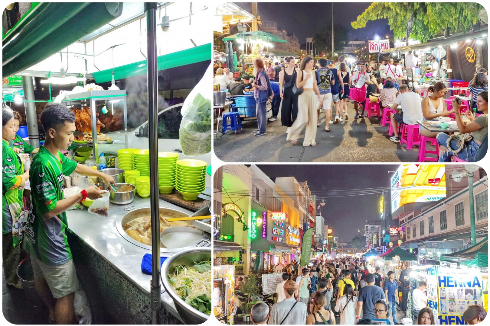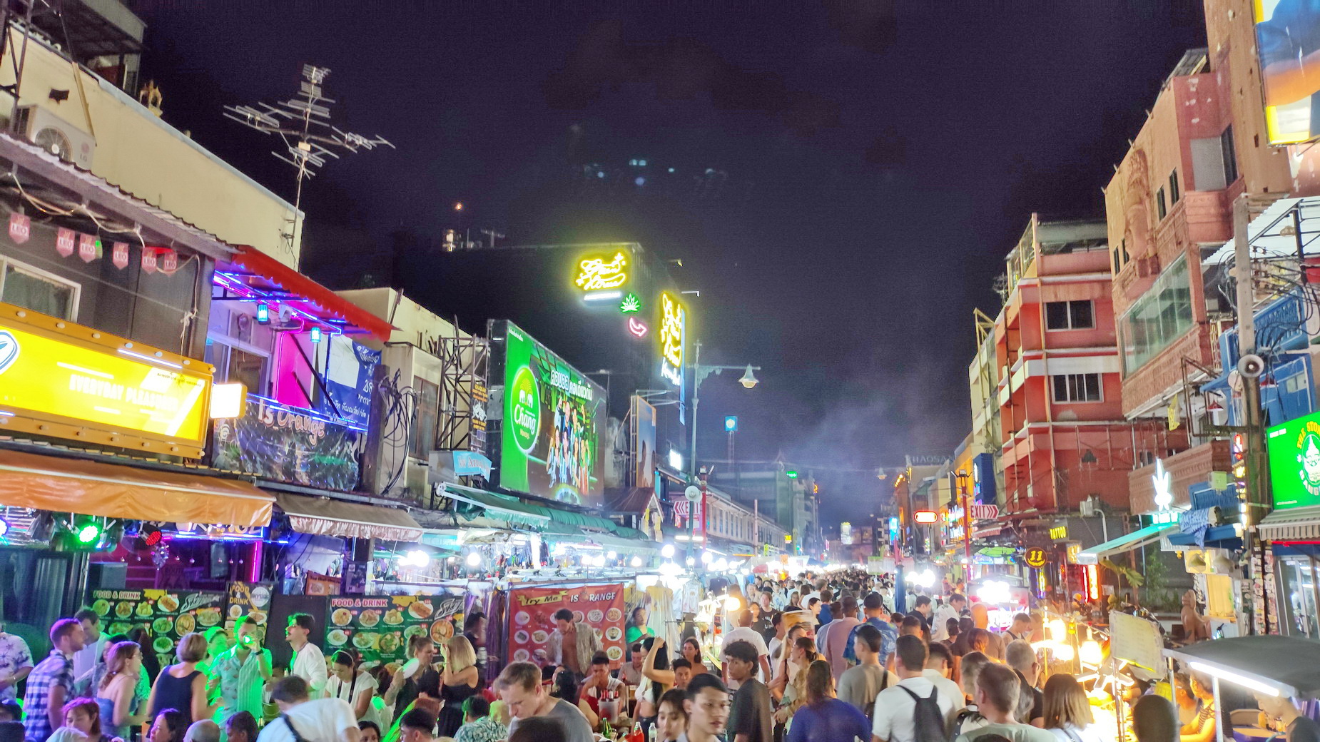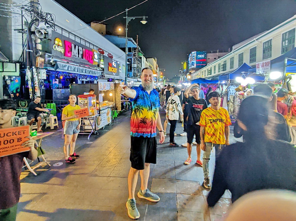 Ο «Khao San» για τον οποίο κάνω λόγο, είναι βέβαια το σημείο αναφοράς του κέντρου της Μπανγκόκ και πεζοδρομείται από το απόγευμα και μετά. Εκεί μπορεί να βρει κανείς τα πάντα, όπως καταστήματα, θορυβώδη μπαρ, κράχτες, πάγκους με φαγητό, πολλή φασαρία και κυρίως αμέτρητους τουρίστες. Πάρτε μια γεύση: