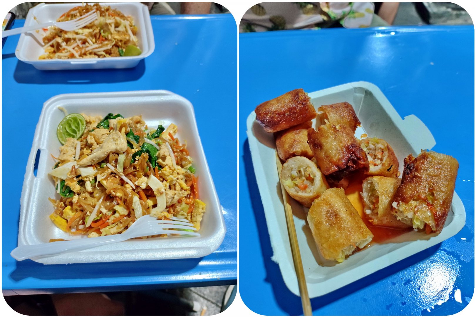 Η πείνα όμως που ξαφνικά ήρθε δε μας έδωσε πολλά περιθώρια κινήσεων. Έπρεπε να εξαφανιστεί, για το λόγο αυτό κατεβήκαμε ένα δυο στενά κάτω απ’ τον πεζόδρομο όπου ήταν σα να βρισκόσουν άλλη πόλη, ανακαλύπτοντας ένα πολύ ωραίο υπαίθριο μαγαζάκι – καντίνα, που σέρβιρε σε εξευτελιστικές τιμές τύπου 2€ τοπικά πιάτα. Ήταν ώρα να δοκιμάσουμε το φημισμένο στα πέρατα της υφηλίου «Pad Thai» ,εκεί μάλιστα που έπρεπε: