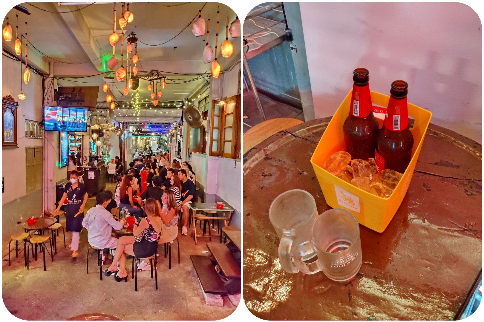 Δεν ήμασταν φυσικά για πεζόδρομο που γινόταν ακόμα μεγαλύτερος χαμός όπως βλέπετε, προτιμώντας τον λιγότερο φασαριόζικο δρόμο «ram buttri» ακριβώς από πάνω, κι ένα μαγαζί με σχεδόν αποκλειστικά ντόπιους, ζωντανή μουσική και ωραίο σύστημα με παγωνιέρα για τις μπύρες: