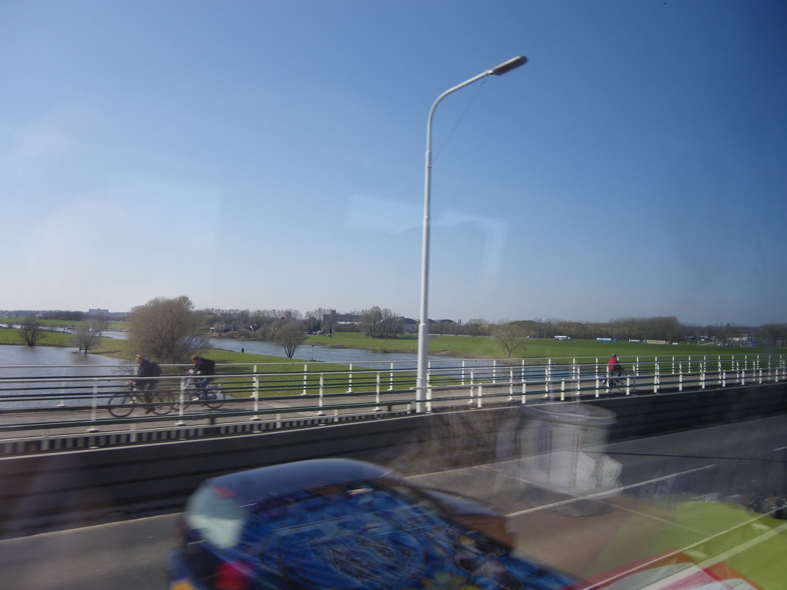 Η διαδρομή, η κλασική ολλανδική, αλλά με μουντό καιρό: με μεγάλες πράσινες εκτάσεις, πού και πού προβατάκια να βόσκουν, κάπου στη διαδρομή ένας ανεμόμυλος, κτήρια διαφορετικά από αυτά που υπήρχαν στο κέντρο της πόλης κλπ. Θυμηθήκαμε τότε και τη διαφωνία του φόρουμ, σχετικά με αυτά τα κτήρια.