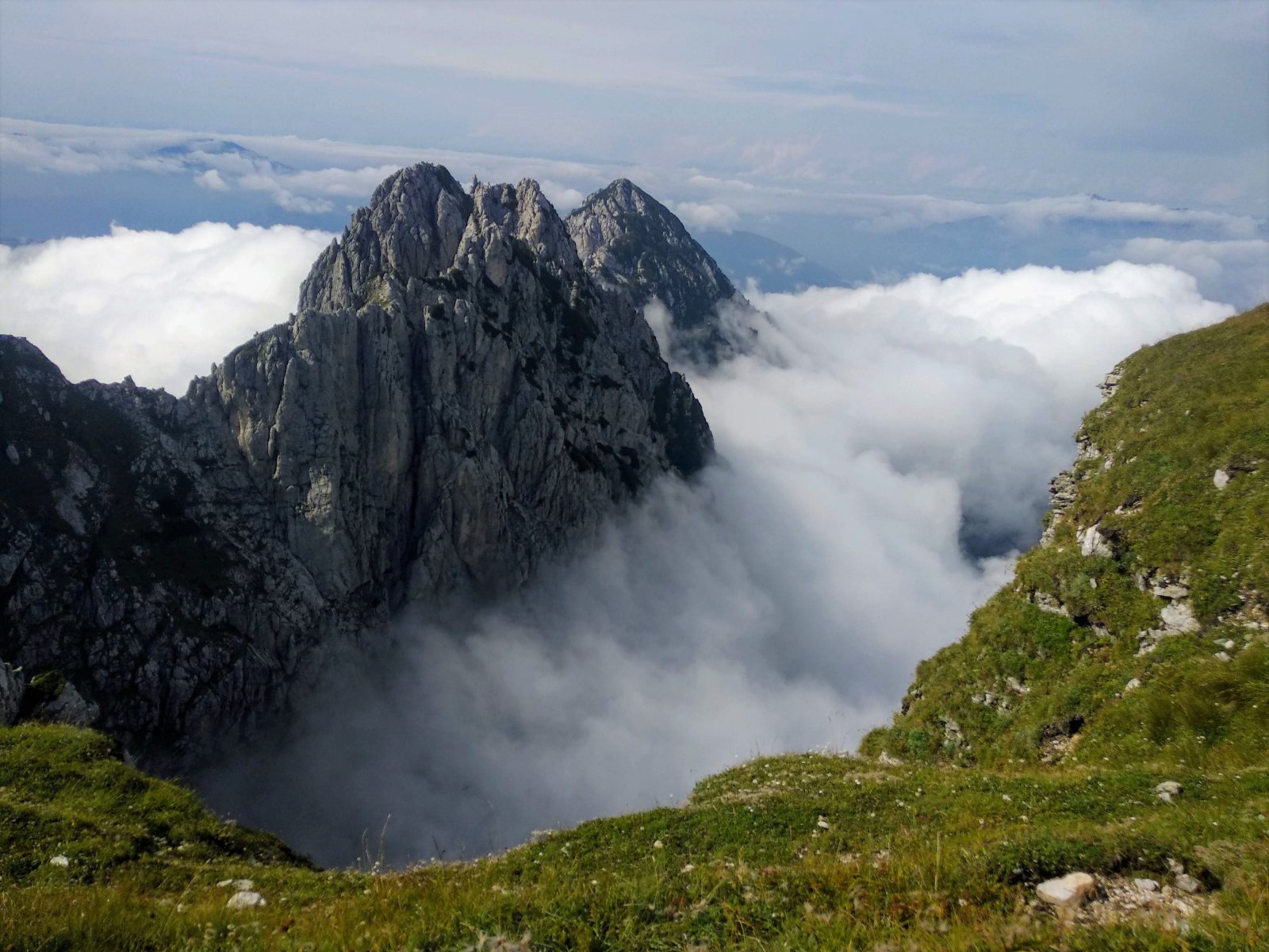 Ανεβαίνοντας το τοπίο αγριεύει, σύννεφα μαζεύονται και πάλι φεύγουν και ο φόβος πλημμυρίζει το μυαλό κάποιων από την παρέα, που αποφασίζουν μόλις λίγο πριν το τέλος, να σταματήσουν την διαδρομή και να επιστρέψουν πίσω. Έτσι έχασαν αυτό το φοβερό θέαμα που αντικρίσαμε εμείς όταν φτάσαμε στο τέλος της διαδρομής.