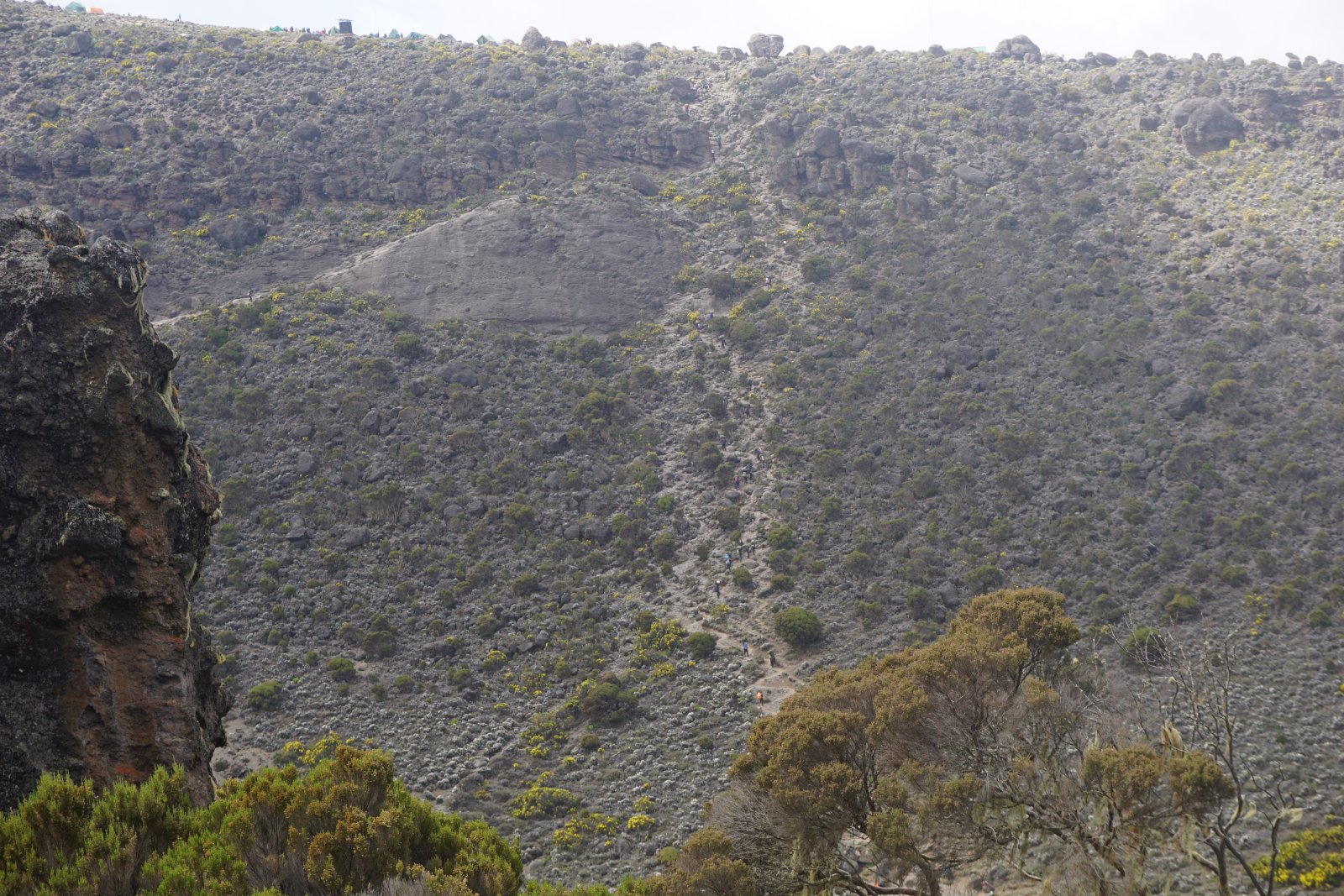 Κοινώς ανεβοκατεβαίναμε τις πλαγιές του βουνού και κινούμασταν περιμετρικά του κρατήρα Kibo μέχρι να φτάσουμε στο επόμενο σημείο για διανυκτέρευση. Στο ενδιάμεσο οι εικόνες εναλλάσσονταν μεταξύ αλπικής ερήμου και των υπέροχων φυτών Lobelia deckenii που συναντώνται στα βουνά της Τανζανίας και θεωρούνται απειλούμενο είδος.