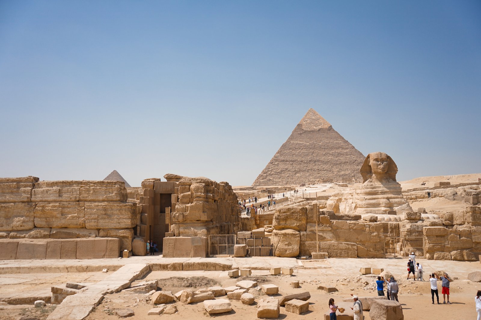 Δίπλα από τη Μεγάλη πυραμίδα βρίσκεται ένα άλλο μεγάλο μυστήριο της αρχαιότητος, η Μεγάλη Σφίγγα της Γκίζας, ένα άγαλμα το οποίο απεικονίζει μια σφίγγα μυθολογικό πλάσμα με σώμα λιονταριού και κεφάλι ανθρώπου. Έχει μήκος 73,5 μέτρα και ύψος 20.22 μέτρα, και αποτελεί το μεγαλύτερο μονολιθικό άγαλμα στον κόσμο.Όταν σταθείς κοντά του μόνο τότε μπορείς να καταλάβεις το μέγεθος του. Δέος και θαυμασμό μπορεί κανείς να νοιώσει γι αυτό το υπέροχο μνημείο.