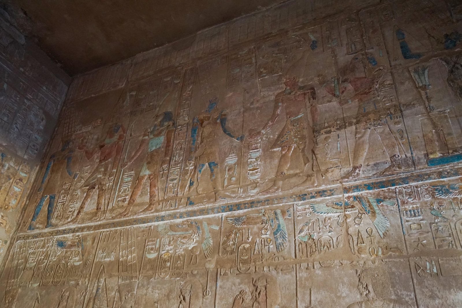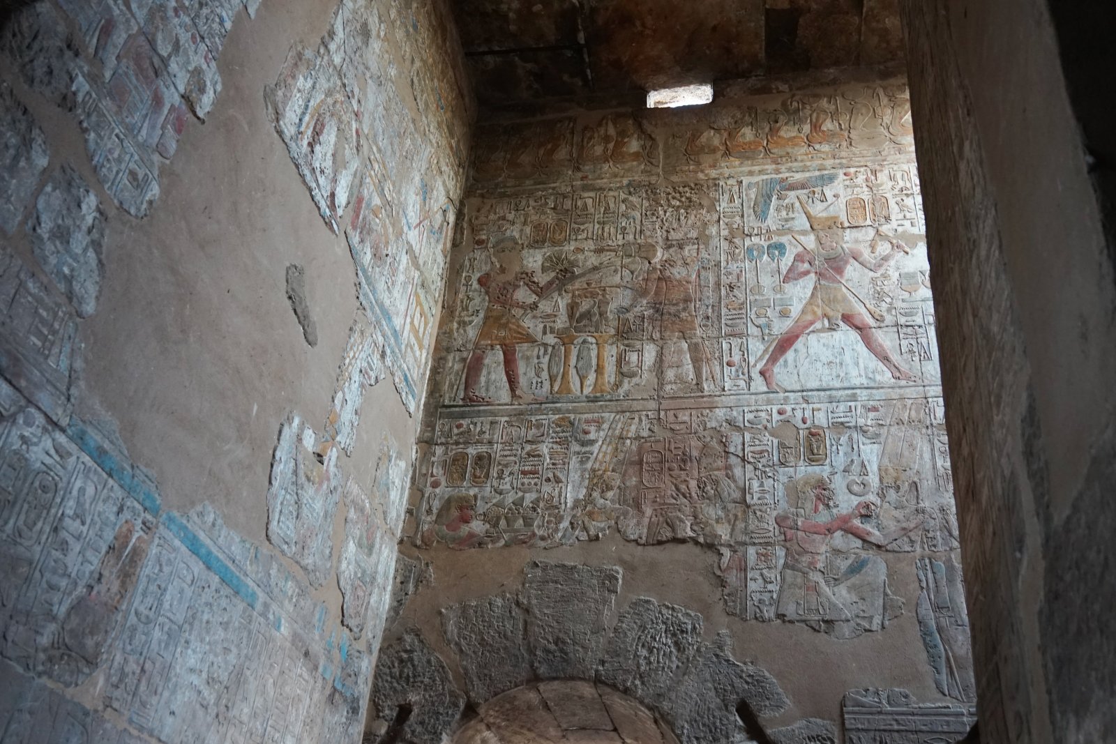 Στον αρχαιολογικό χώρο ξεχωρίζουν ακόμη ανάγλυφη παράσταση της Κλεοπάτρας, έγχρωμες ζωγραφιές στην οροφή και περίτεχνοι κίονες.